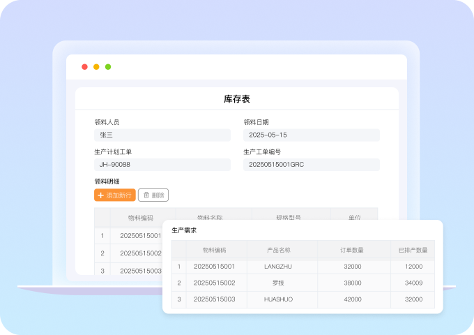 系统不仅提供了 采购、销售、生产、库存管理 的标准化解决方案,还打破了各板块间的数据信息壁垒,实现 进、销、存、产一体化管理。