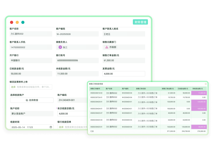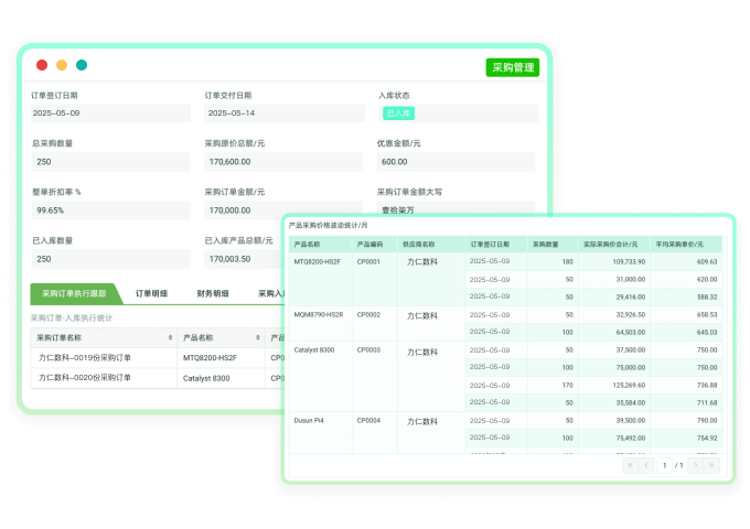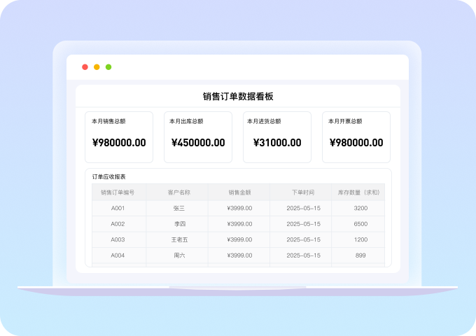 订单库存、发货、打款进度一目了然,防止订单延期、坏账