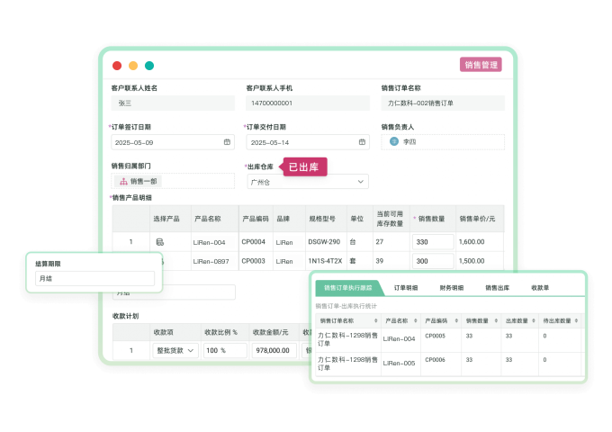 【报价-下单-出库-退换货-收款】订单全流程管理