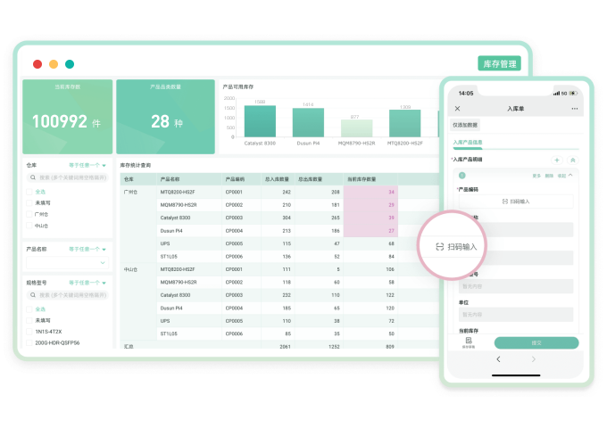 智能扫码贯通全流程,多级库存精准掌控。从原材料入库到成品出库全域覆盖,PDA/手机扫码自动校验极速作业智能调控。