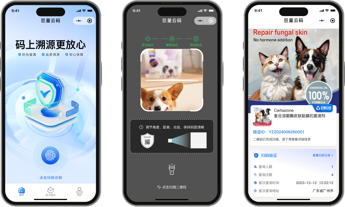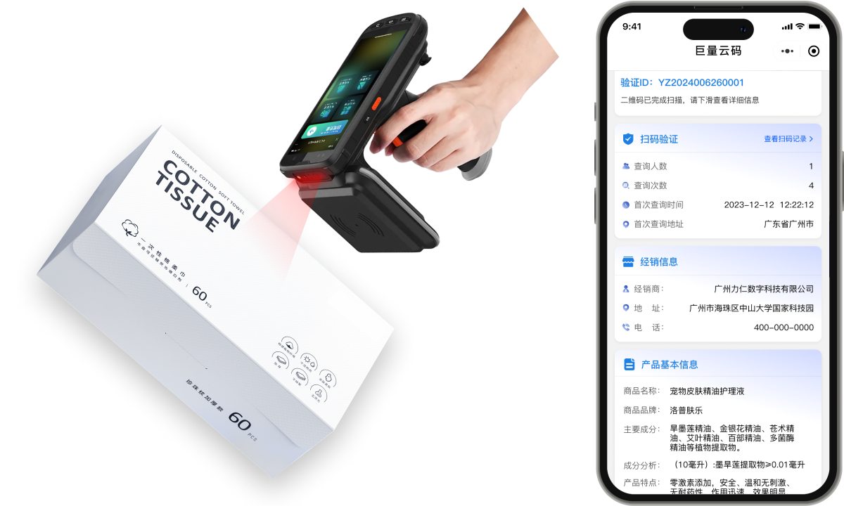 让消费者能够方便快捷地验证产品的真伪。通过简单的扫描巨量云码,用户即可获得实时的验证结果。同时,我们还提供了手机应用和小程序验证平台,方便用户随时随地进行防伪验证,提供极大的便利性和互动性。
